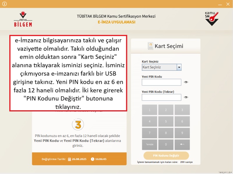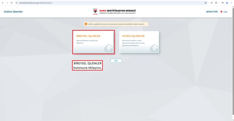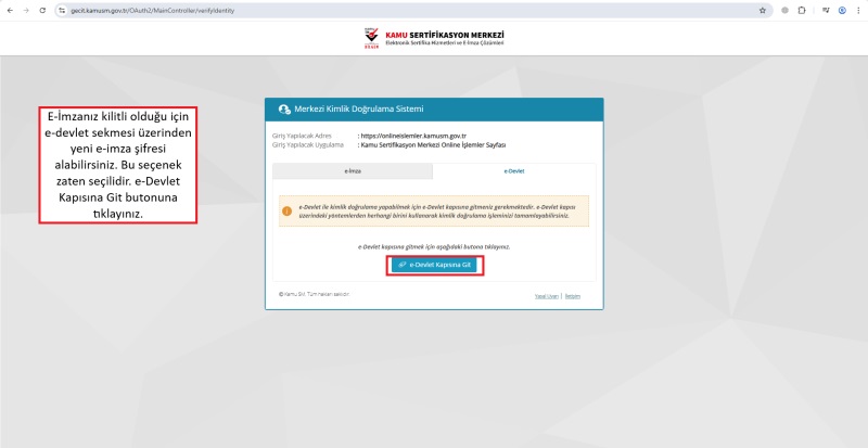 KVKK kapsamında ve ıslak imza yerine geçtiği için önem arz eden e-imza şifrenizin şahsınızca alınması gerekmektedir.