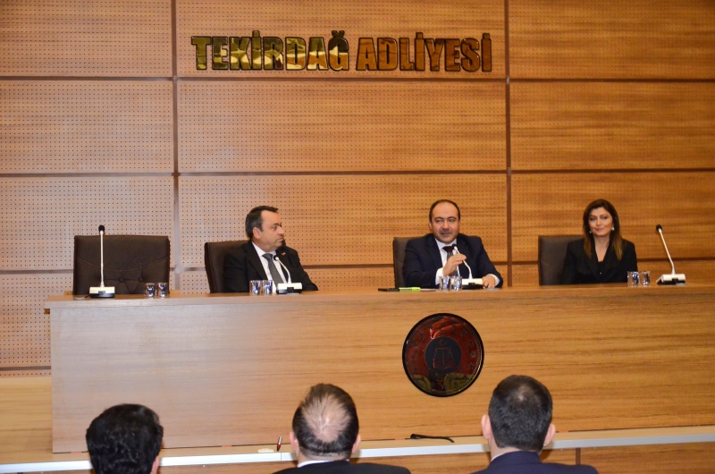 Hakimler ve Savcılar Kurulu 2. Daire Üyesi Sayın Serdar ATEŞ Tekirdağ Cumhuriyet Başsavcısı Sayın Erdal ŞENOL ve Tekirdağ Adalet Komisyonu Başkanı Sayın Kadriye ATALAY KAHRAMAN ile yaptıkları görüşmenin ardından Tekirdağ Adliyesi Şehit Cumhuriyet Savcısı Mehmet Selim KİRAZ Konferans Salonunda Hakim ve Cumhuriyet Savcısı meslektaşlarımız ile bir araya gelerek bir söyleşi gerçekleştirilmiştir.